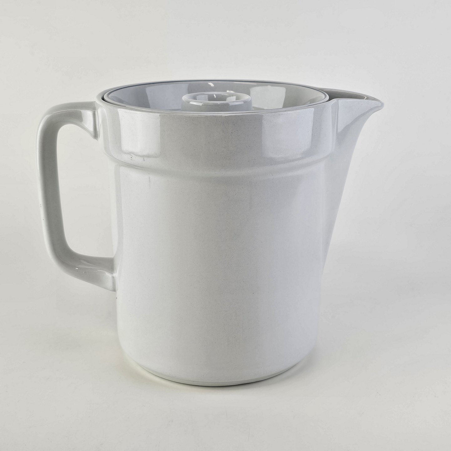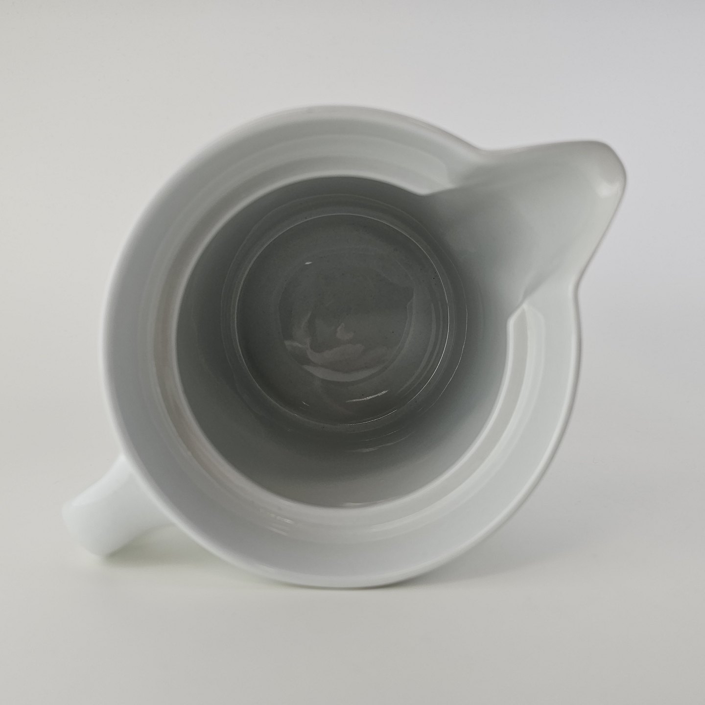Blåkant er stel i hvid fajance med dekoration af en blå streg på kanten