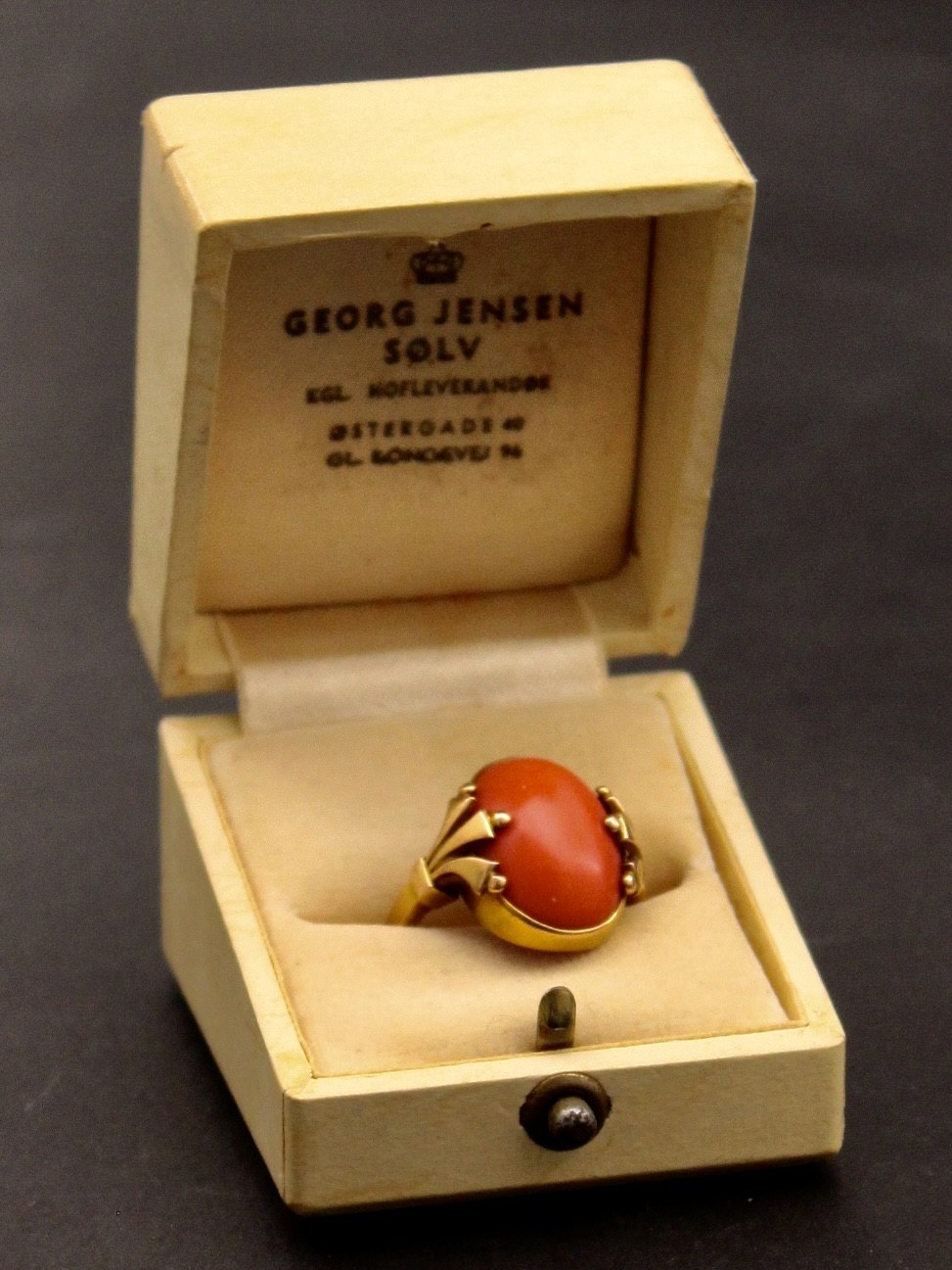 Georg Jensen 14 carat gold ring #213 size 53 with cabochon cut coral stamped from 1930-45 item no. 636931