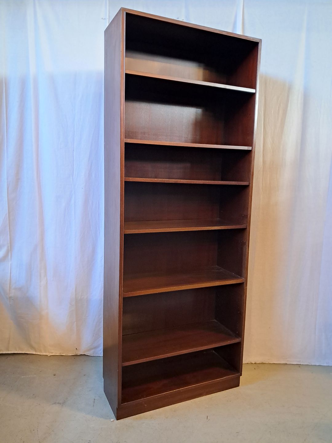 Reol i fineret mahogni, fra 1950erne.