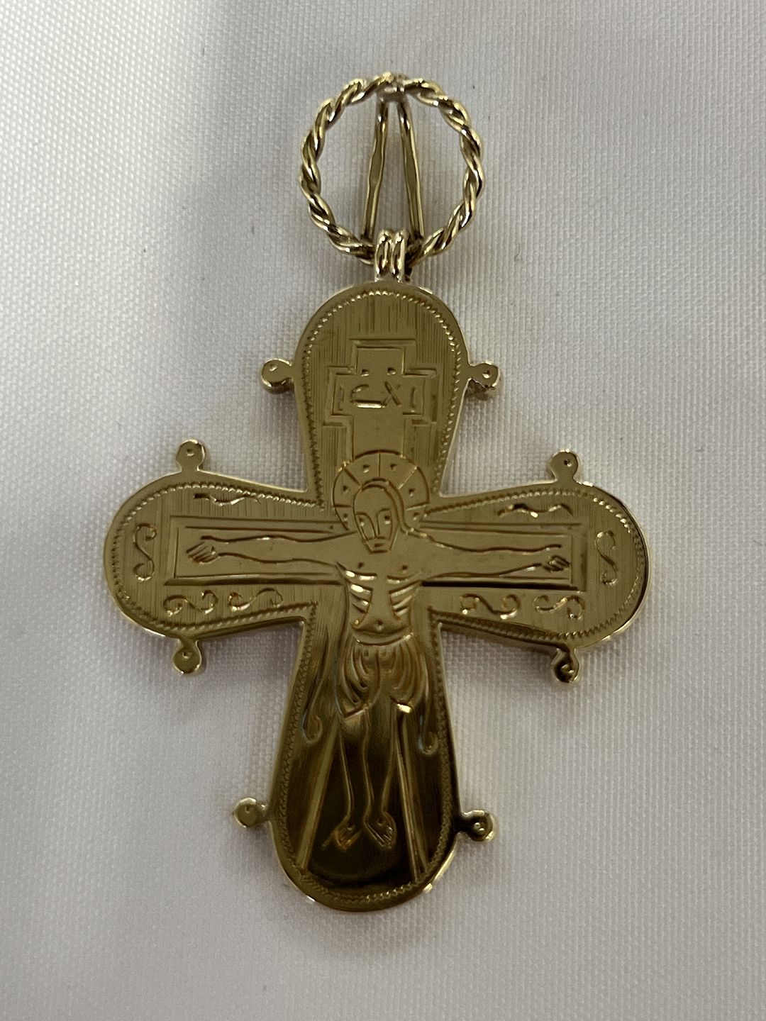 Large Day of the Dead cross in 14 carat gold, stamped BH 585