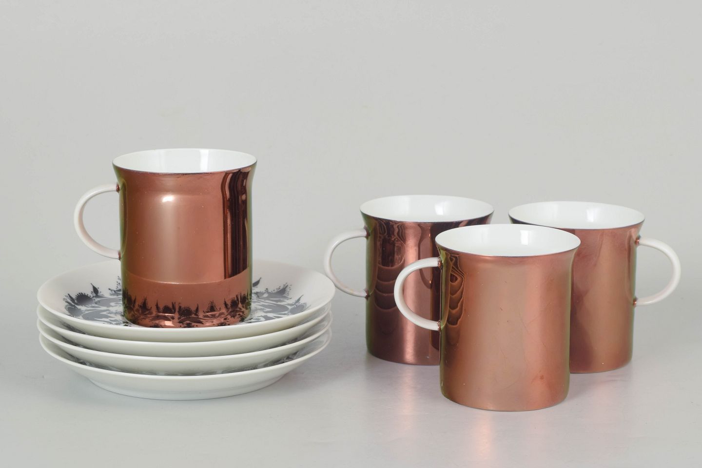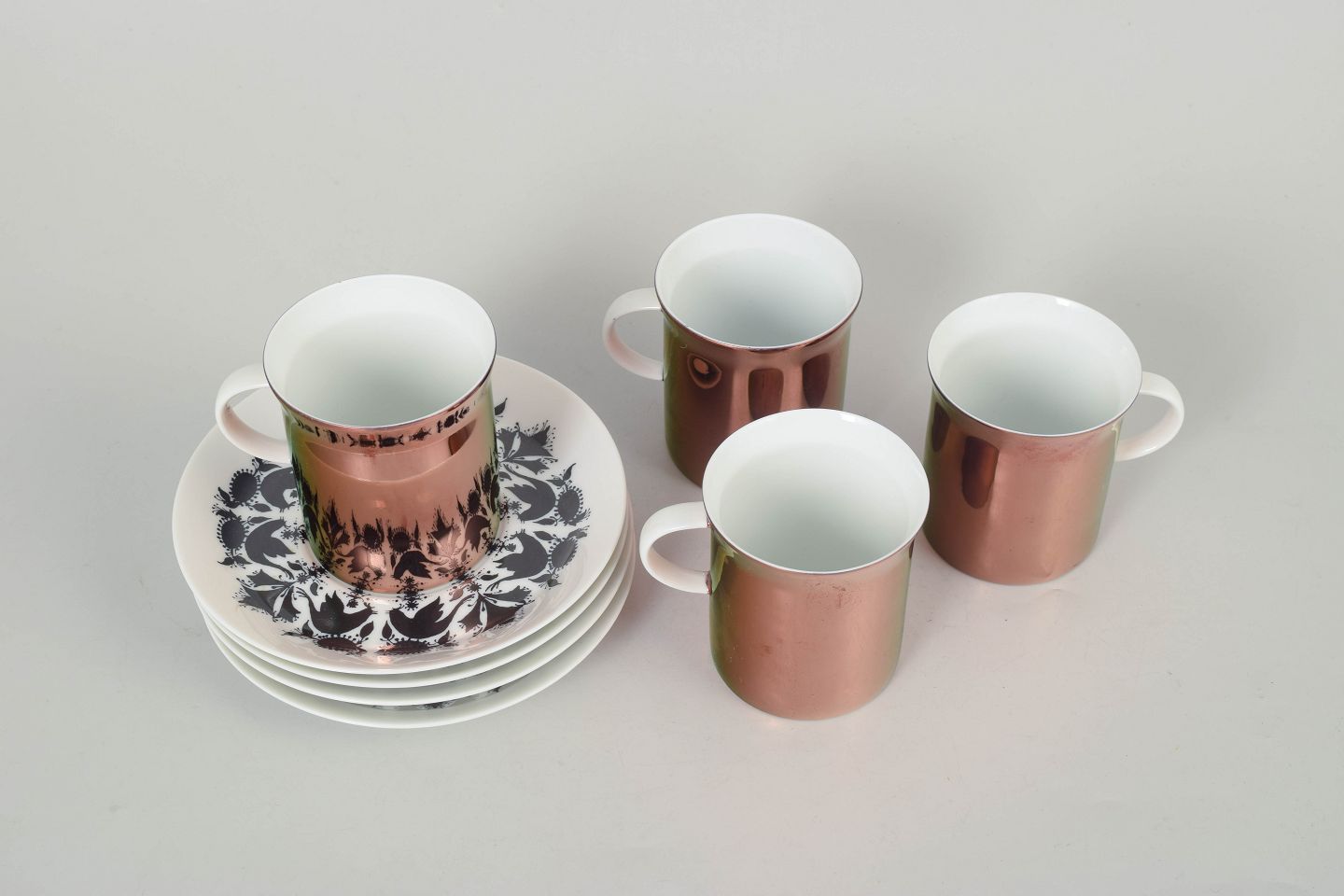 Bjørn Wiinblad for Rosenthal, set of four coffee cups with matching saucers.