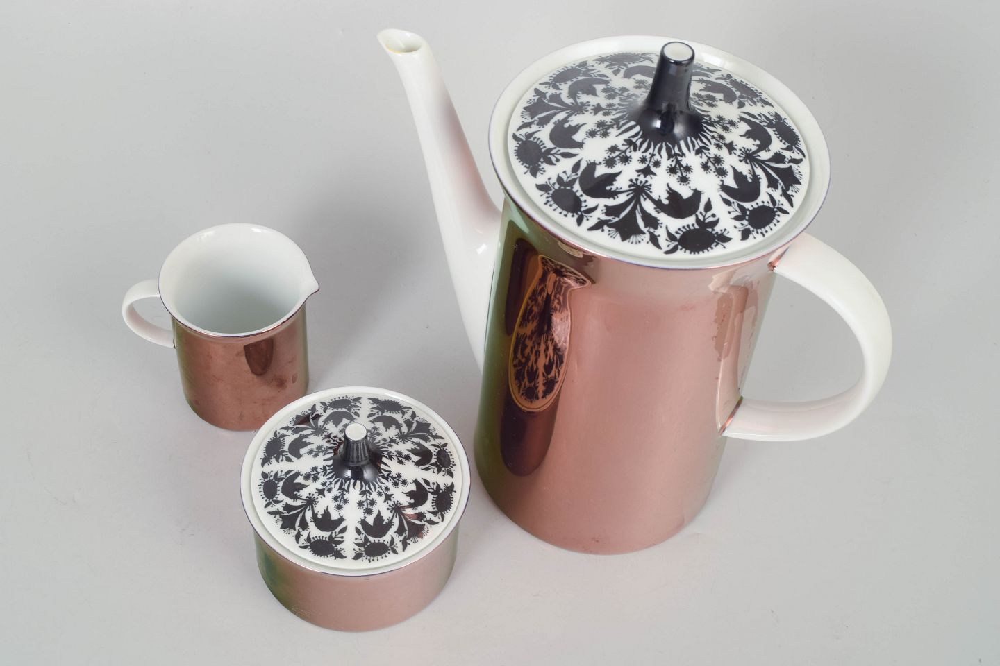 Bjørn Wiinblad for Rosenthal, coffee pot with creamer and sugar bowl.