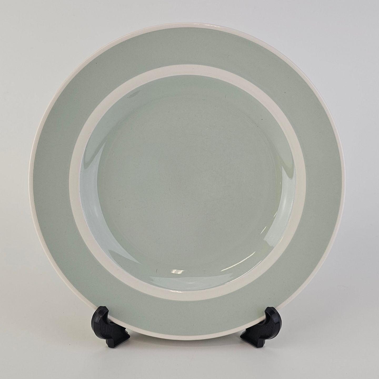 Fajancestel i pastelgrøn farve med hvid stribe