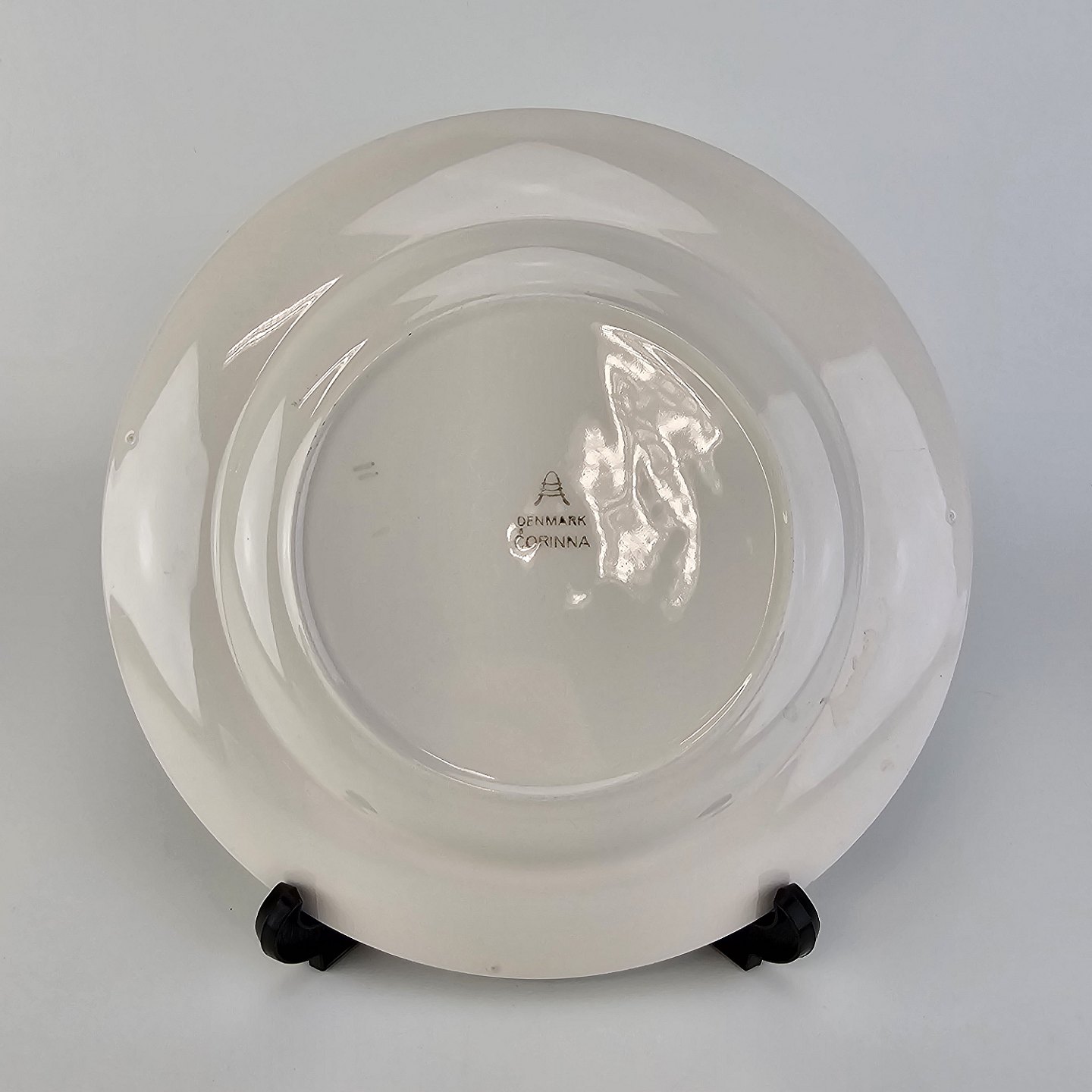 Flad tallerken i fajance fra stellet Corinna fremstillet i perioden 1937-1966