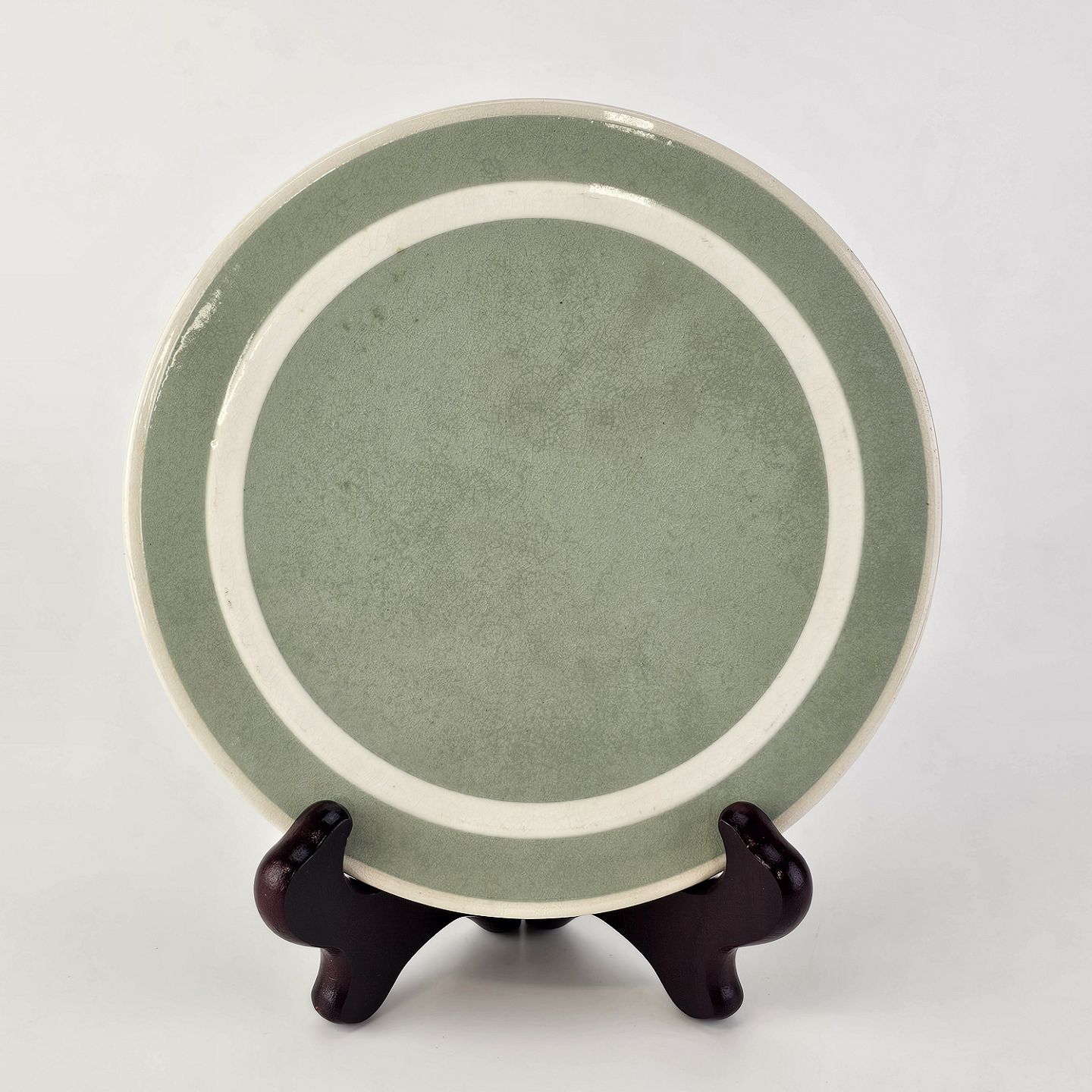Fajancestel i pastelgrøn farve med hvid stribe