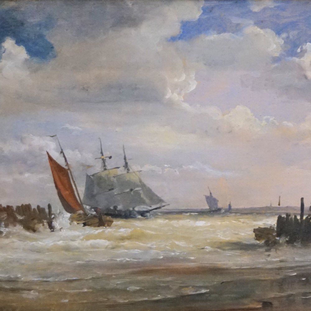 Marine painting by Carl Frederik Sørensen, Holland, 1853. Oil on canvas. Signed "C. F. Sørensen 1853".