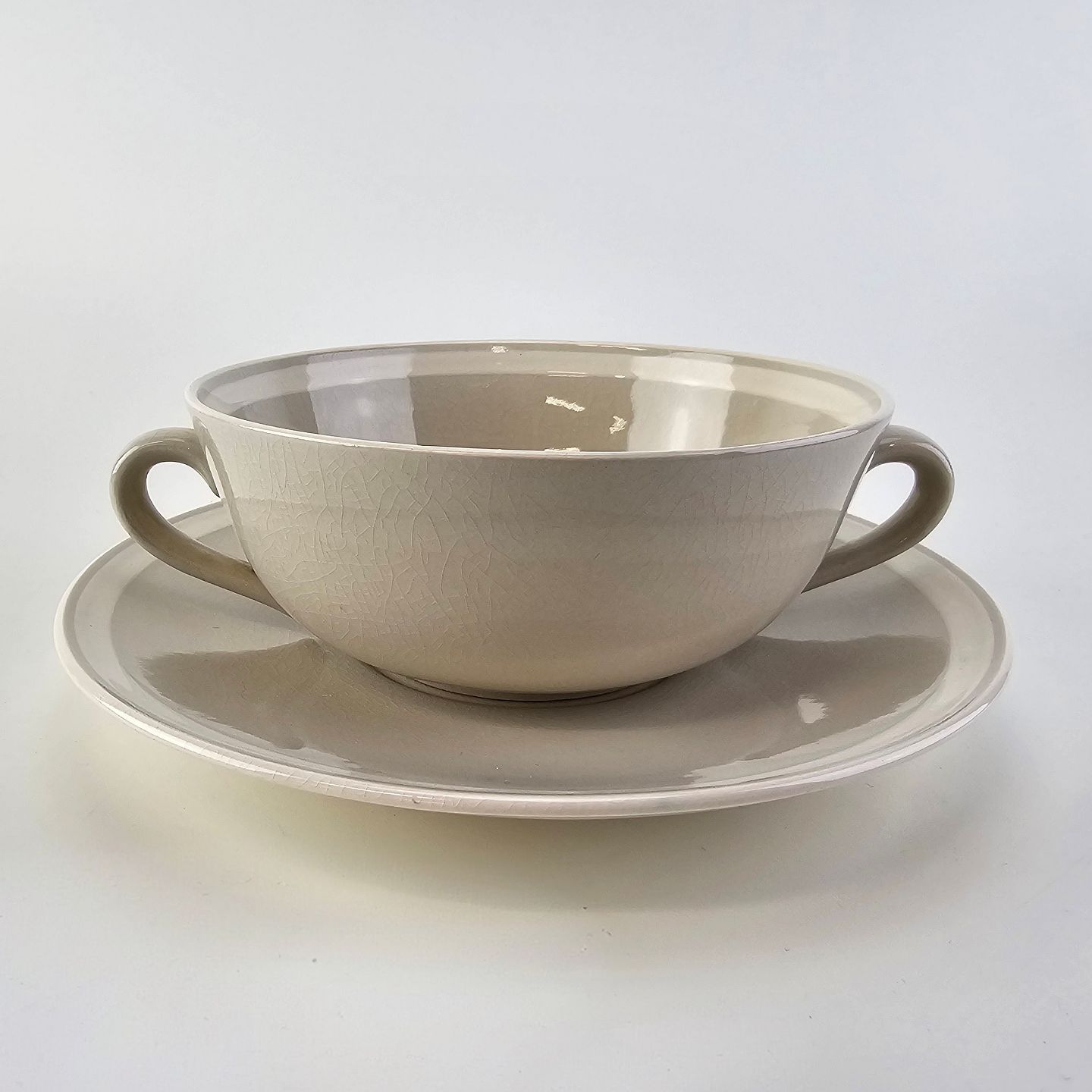 Bouillonkop med underkop i fajance fra stellet Dorrit fremstillet i perioden 1952-1966