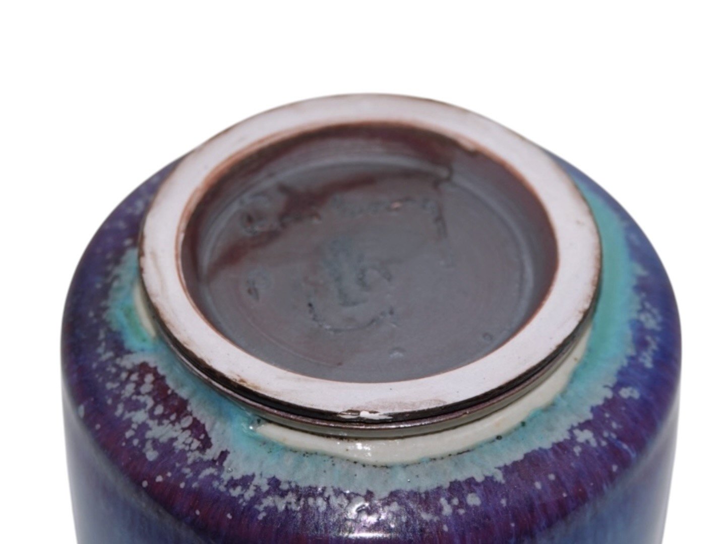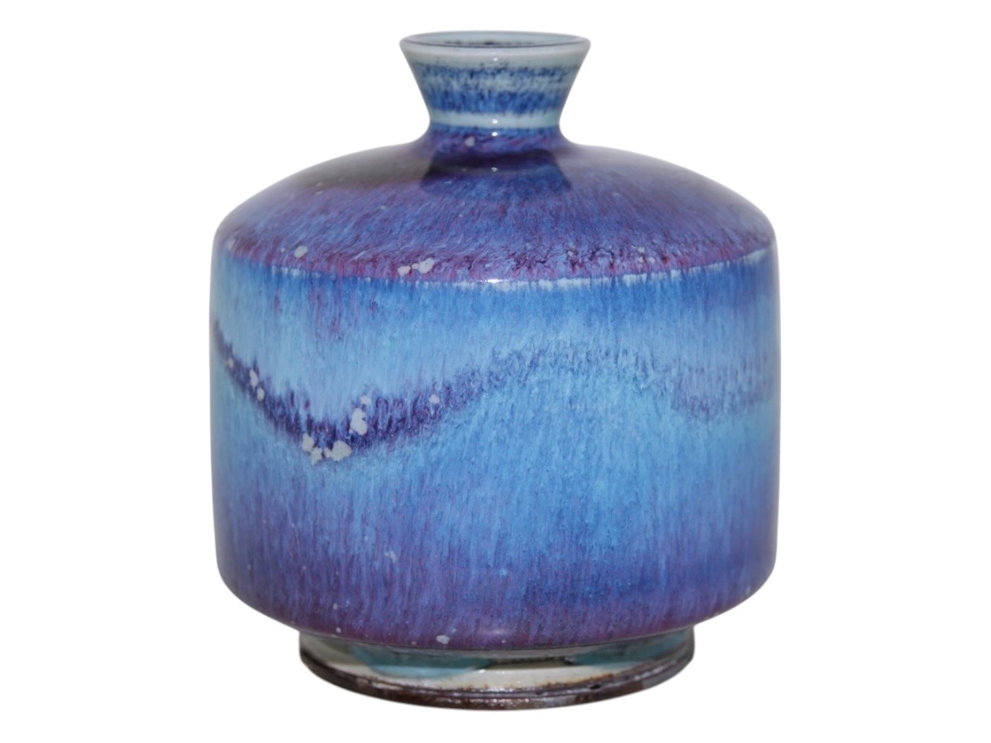 Gustavsberg Studio Sweden art pottery, small Berndt Friberg blue vase with aniara glaze.