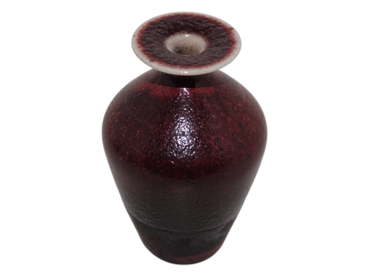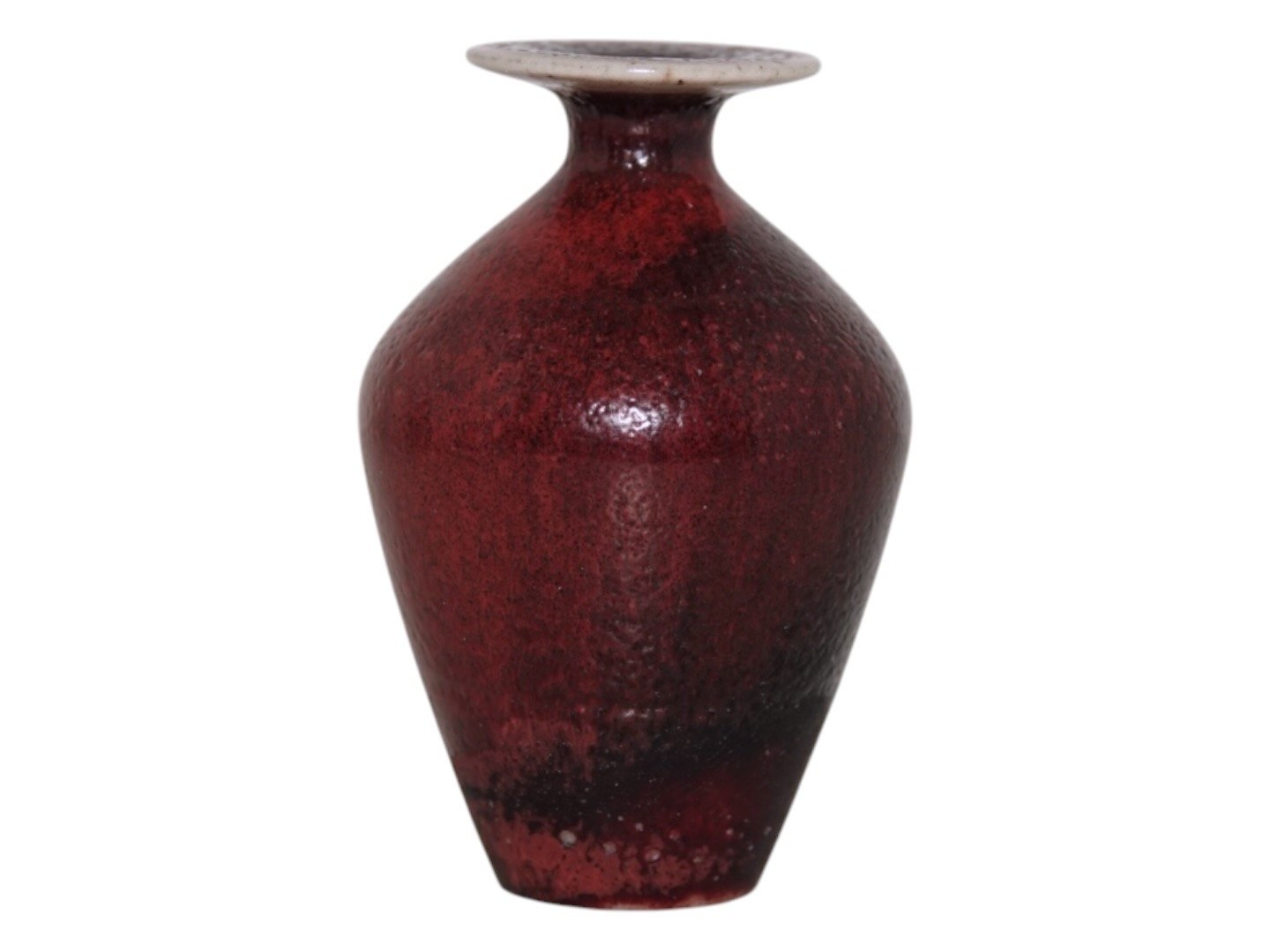 Höganäs Sweden art pottery, red miniature vase by John Andersson (1899-1965).