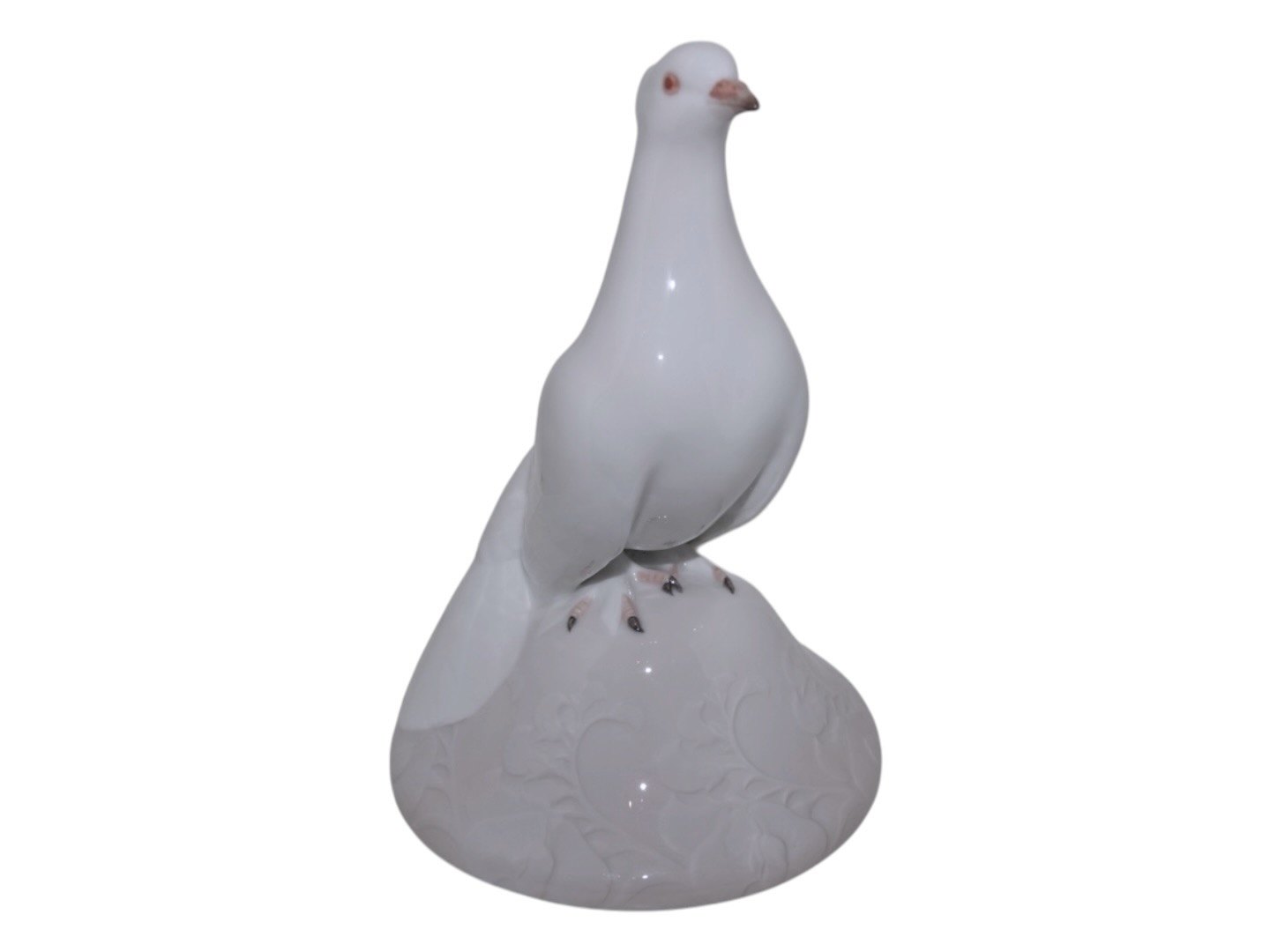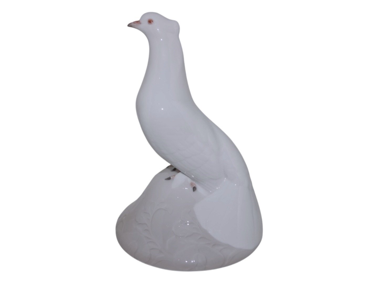 Rare and large Royal Copenhagen figurine, white pidgeon. Originally a small platter has been together with this.