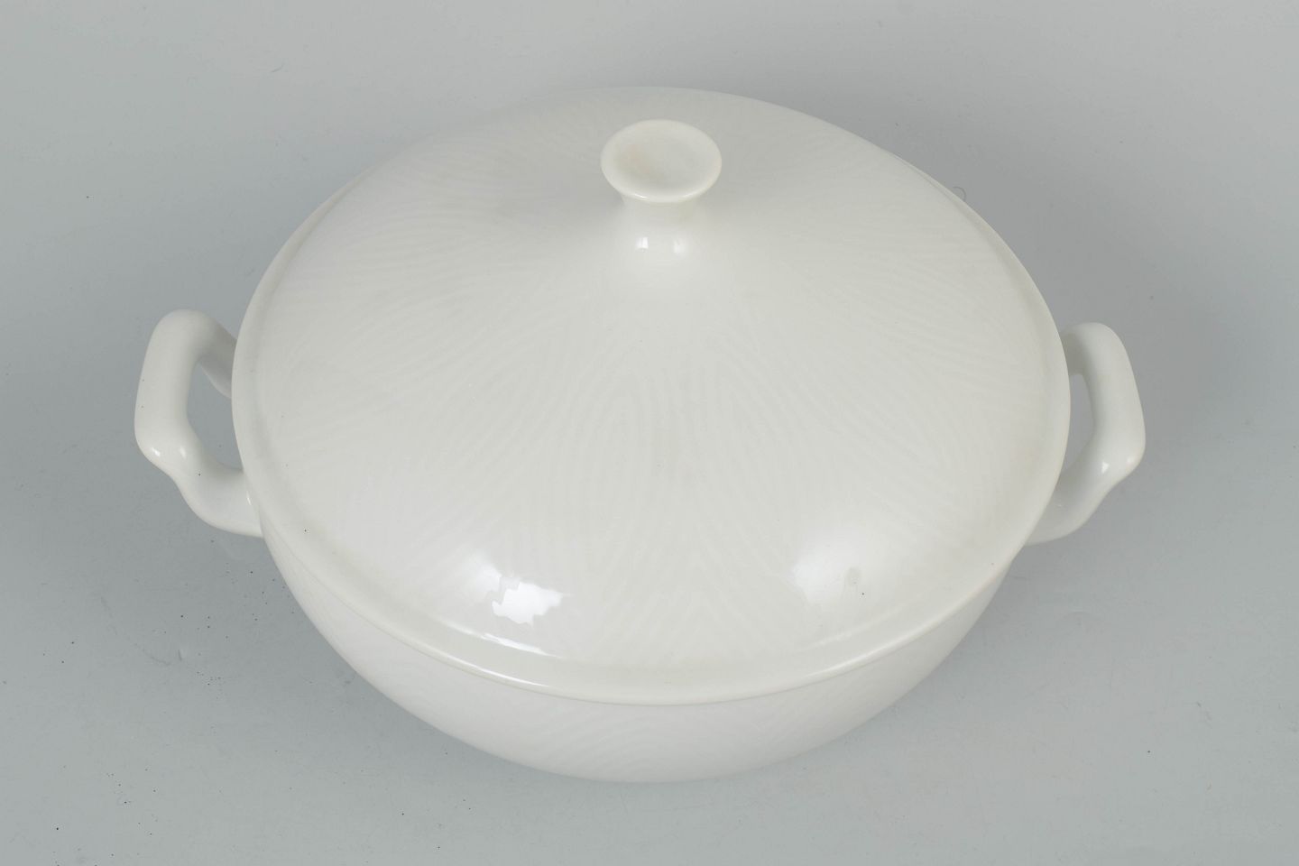 Elegant porcelain tureen with lid, produced for Royal Copenhagen in Axel Salto’s distinctive design language. The design combines functional elegance with refined organic lines, characteristic of Danish modernist porcelain.