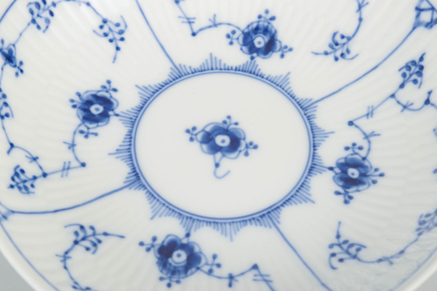 Classic compote from Royal Copenhagen’s Blue Fluted Plain service, model 1/18, crafted in hand-painted porcelain with the iconic cobalt blue pattern. This example is fourth factory quality with three incised cancellation lines from the 1970s.