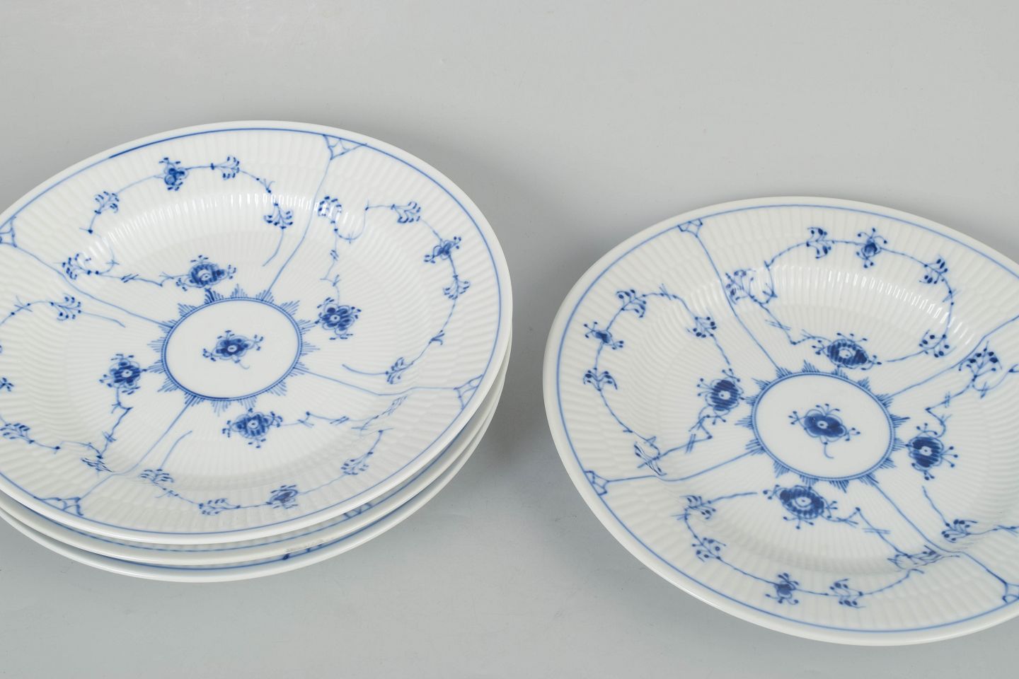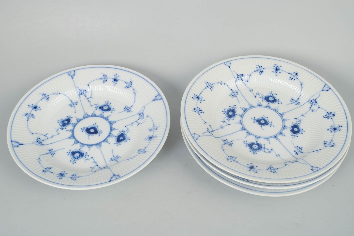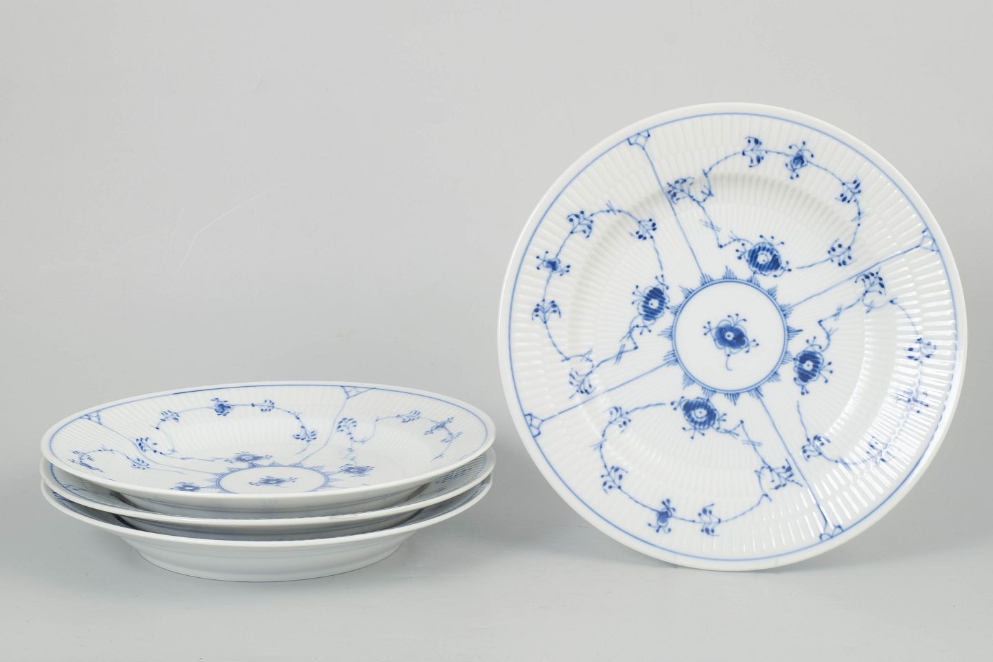 Royal Copenhagen Blue Fluted Plain, set of four dinner plates.