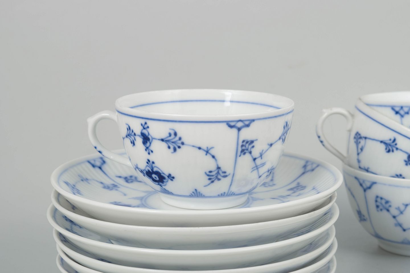 Royal Copenhagen Blue Fluted Plain, set of six coffee cups with matching saucers.