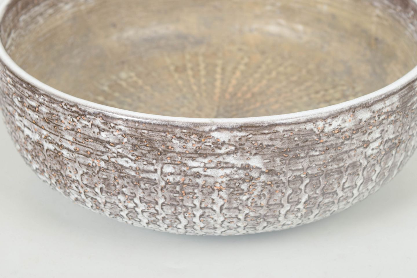 Round decorative bowl model 6024 with textured surface in glazed ceramic featuring organic relief and silver-toned finish.
