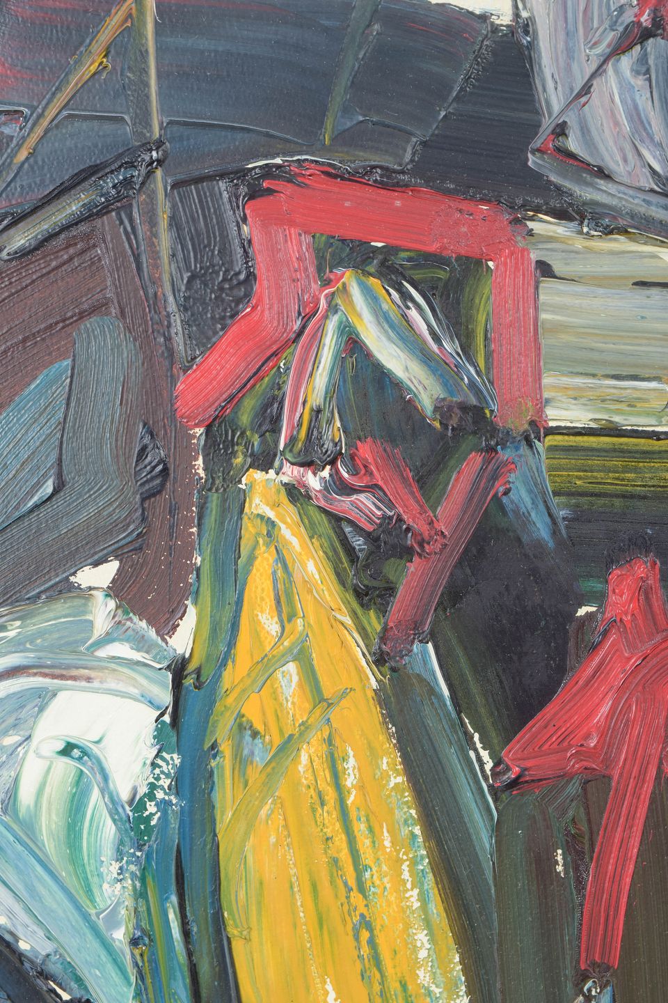Expressive abstract composition executed with impasto brushwork and bold colourism, where modernist forms and spontaneous gesture create a dynamic visual language.
