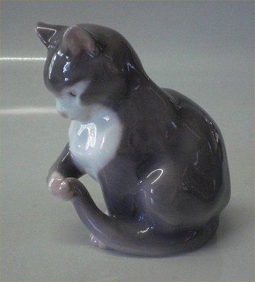 Bing and Grondahl Grey Cat B&G 1553 Kitten Sitting DJ 10 cm Marked with the three Royal Towers of Copenhagen. Bing & Groendahl In mint and nice condition