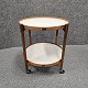 Smukt, gammelt hvidt bord med rød og hvid nistret marmorplade Lampebord / ...