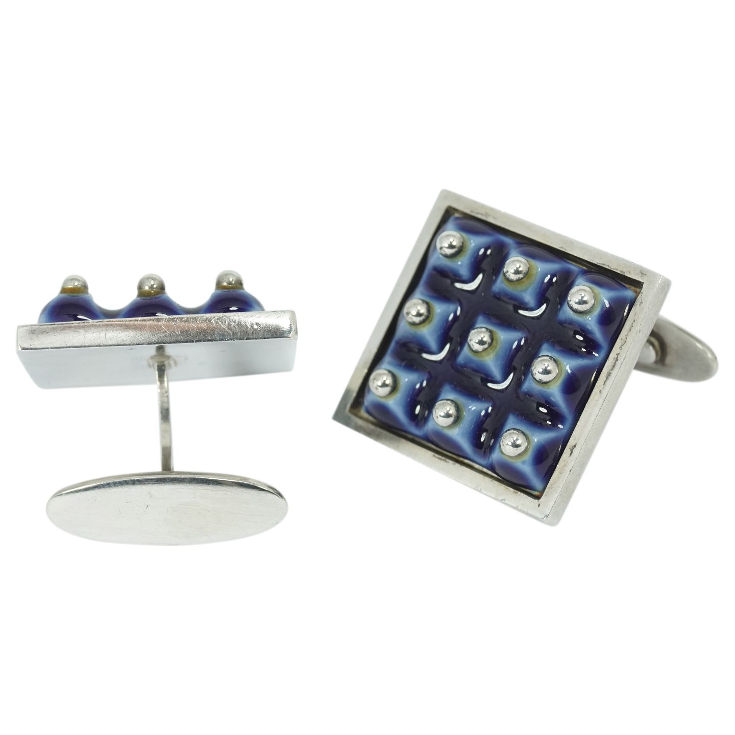 A. Michelsen & Royal Copenhagen; Par manchetknapper af sølv og porcelæn