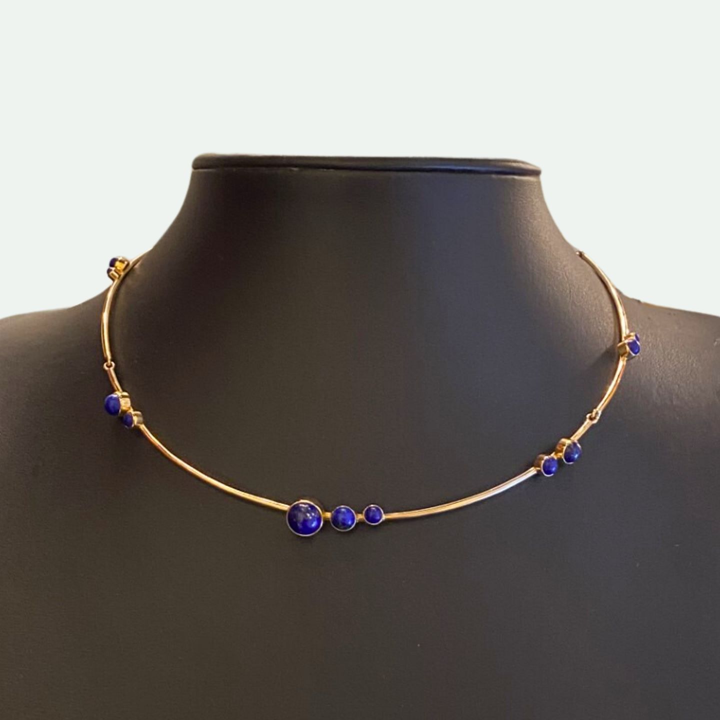 Karen Strand; Necklace of 14k gold with Lapis Lazuli