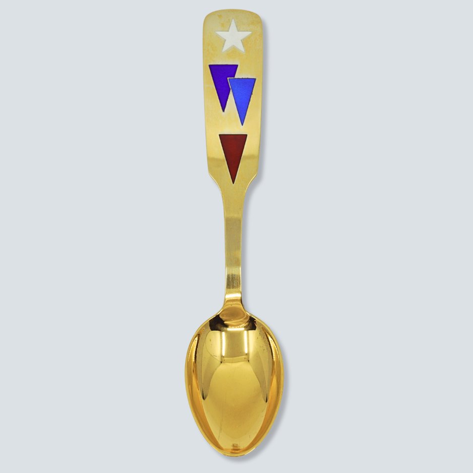 A. Michelsen juleskeer. Søren Sass for A. Michelsen; Juleske 1954. Juleske af forgyldt sterling sølv med emalje. Designet af Søren Sass.