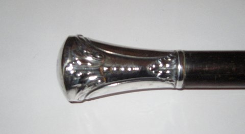 Antique Walking Cane with silverplated handle. In good used condition. The handle measures 7,5cm and the cane measures 91,5cm