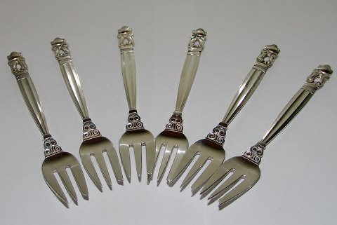 Georg Jensen Acorn Sterling Silver Cake Forks. Measures 14,3cm and is in good condition. We have 9 in stock.