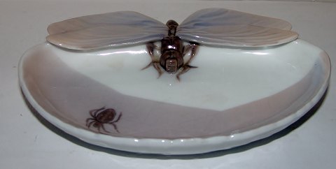 Royal Copenhagen Art Nouveau Dragonfly and Spider Dish No 9/15. Measures 17cm. The condition is okay, but it has been rapaired. The repair is very good and it is difficult to say what has been wrong with the wings, but something has been made on them. But EXSTREMELY difficult to tell.