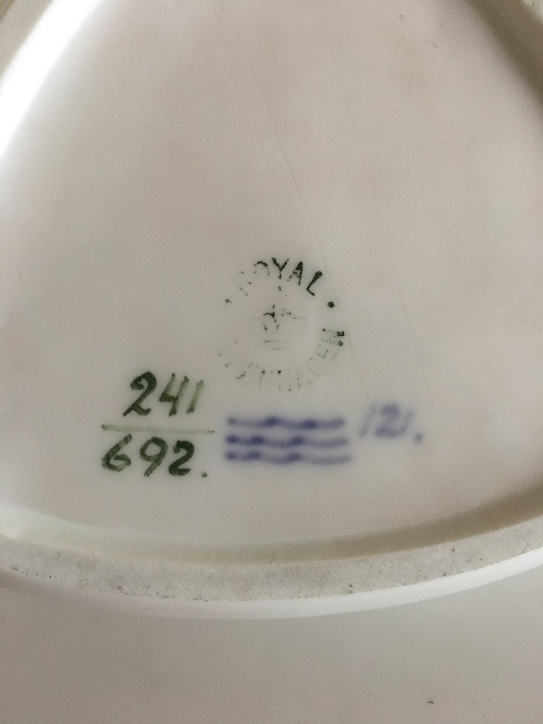 Royal Copenhagen Art Nouveau Monkey dish No 692. Measures 8cm and is in good condition. But has a repair. Not on the figurine part, but on the dish. I can not say where and what. But I can see has has gotten a layer of varnish. So it must have been repaired.