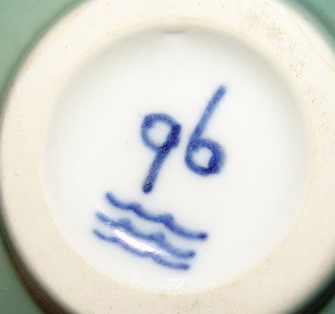 Royal Copenhagen Stoneware Unique Celedon vase by Gerd Bogelund. Measures 14cm wide and 9cm high. In good condition.