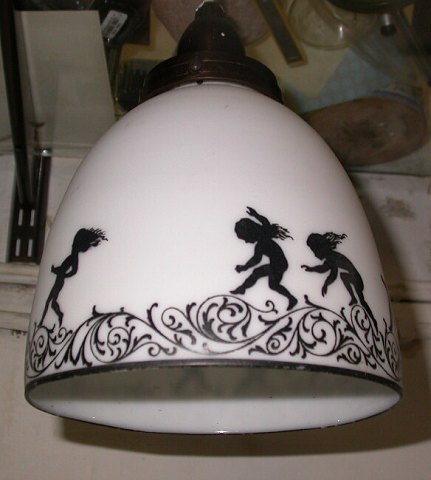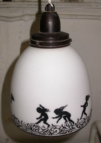 Old glass lamp in white glass. Decorated with motif around the lamp. In perfect condtion. 20½ cm high.