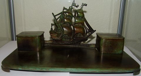 GAB (Guldsmedsaktiebolaget) Bronze Inkwell Set. Measures 29cm x 16cm and is in good condition.