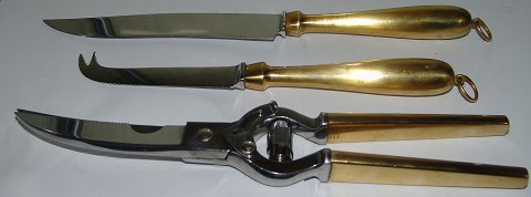 Georg Jensen Henning Koppel Messing Poultry Sissor, Cheeseknife and Carving Knife.
