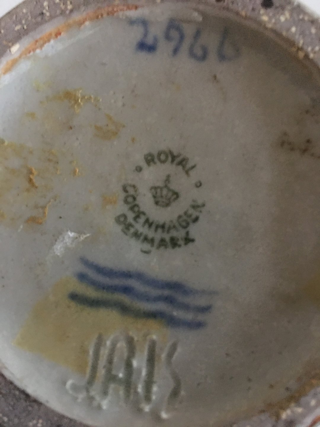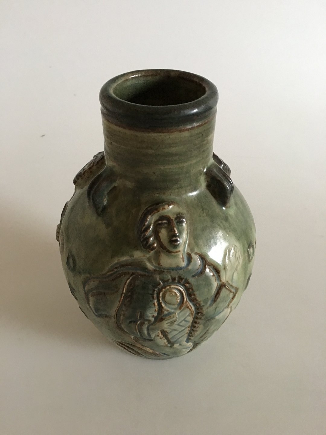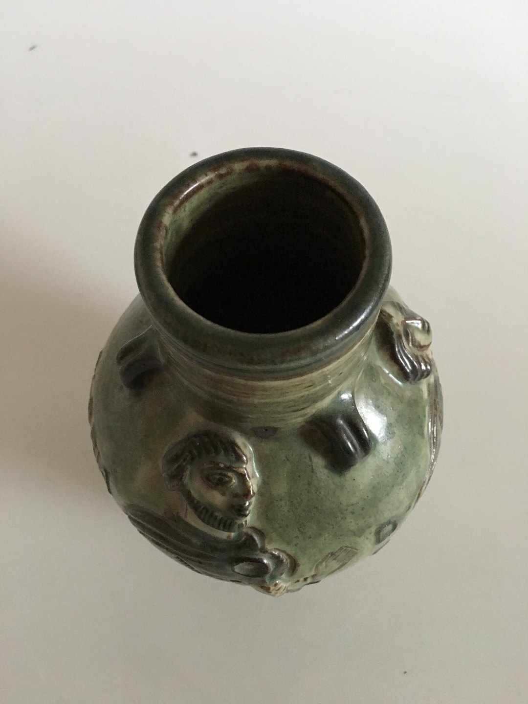 Royal Copenhagen Jais Nielsen Stoneware Vase No 2966. In rare green glaze. Measures 21cm and is in good condition.