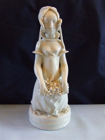 Royal Copenhagen Figurine Huguenot Girl No 12461. Måler 20cm and has a few chips. Designed by Arno Malinowski.