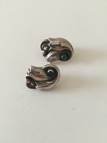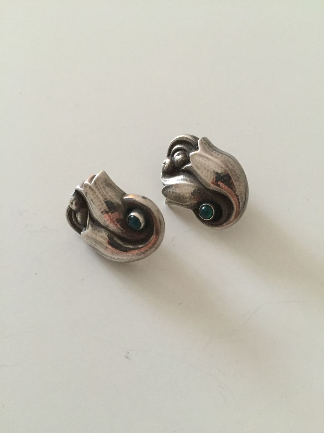 Georg Jensen Sterling Silver earclips with green stones No 100A. Measures 2,2cm (0 55/64") and is in good condition. Weighs 7g / 0,25oz
