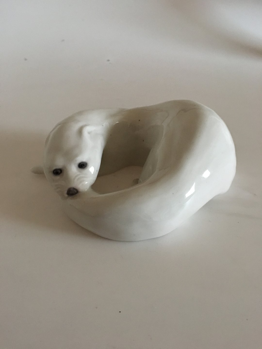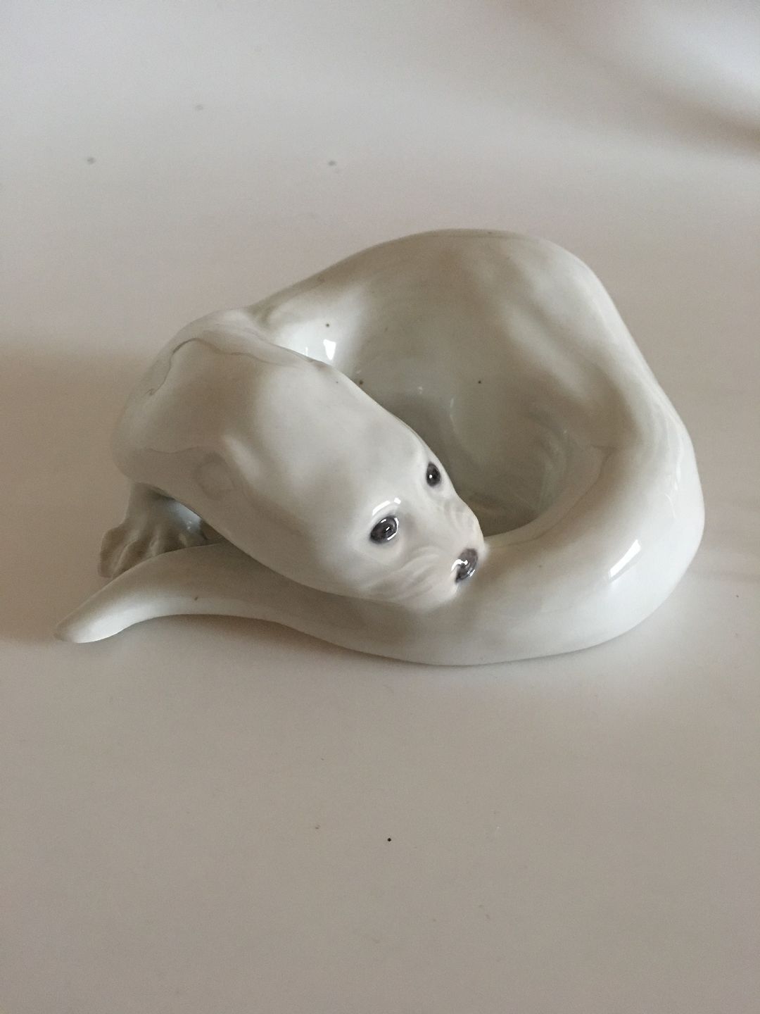 Royal Copenhagen Figurine Otter biting its tail No 776. Measures 7cm x 19m and is in good condition. Marked as a second. Designed by Knud Kyhn in 1906.