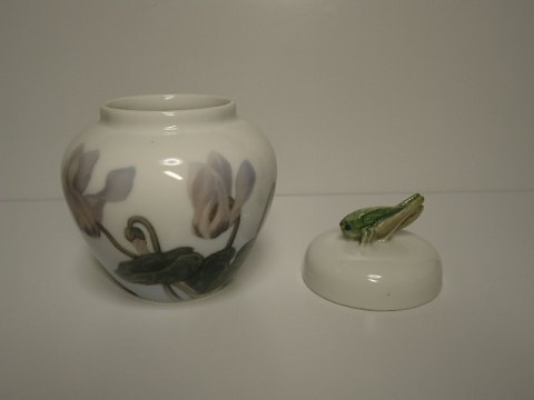 Royal Copenhagen Art Nouveau Vase with lid Grasshopper No 254/254. In good condition.