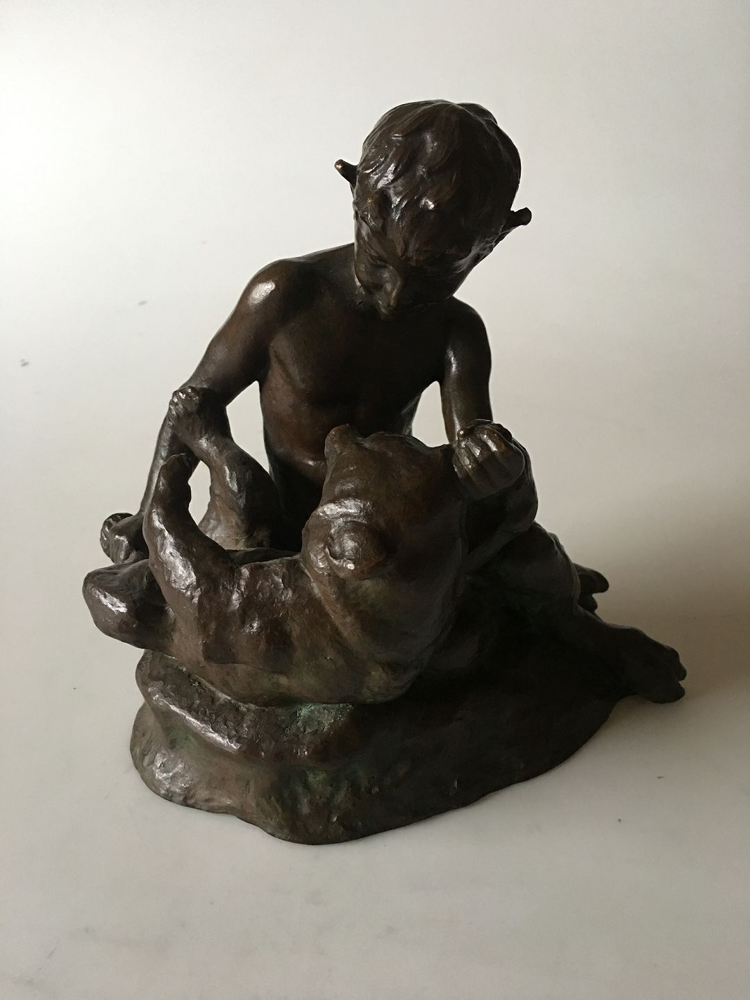 Lauritz Jensen Bronze Figur af Pan og Bjørn fra Dansk Kunsthandel. Måler 18cm høj og i god stand. signeret Lauritz Jensen 1918 and DK 2 for Dansk Kunsthandel model 2