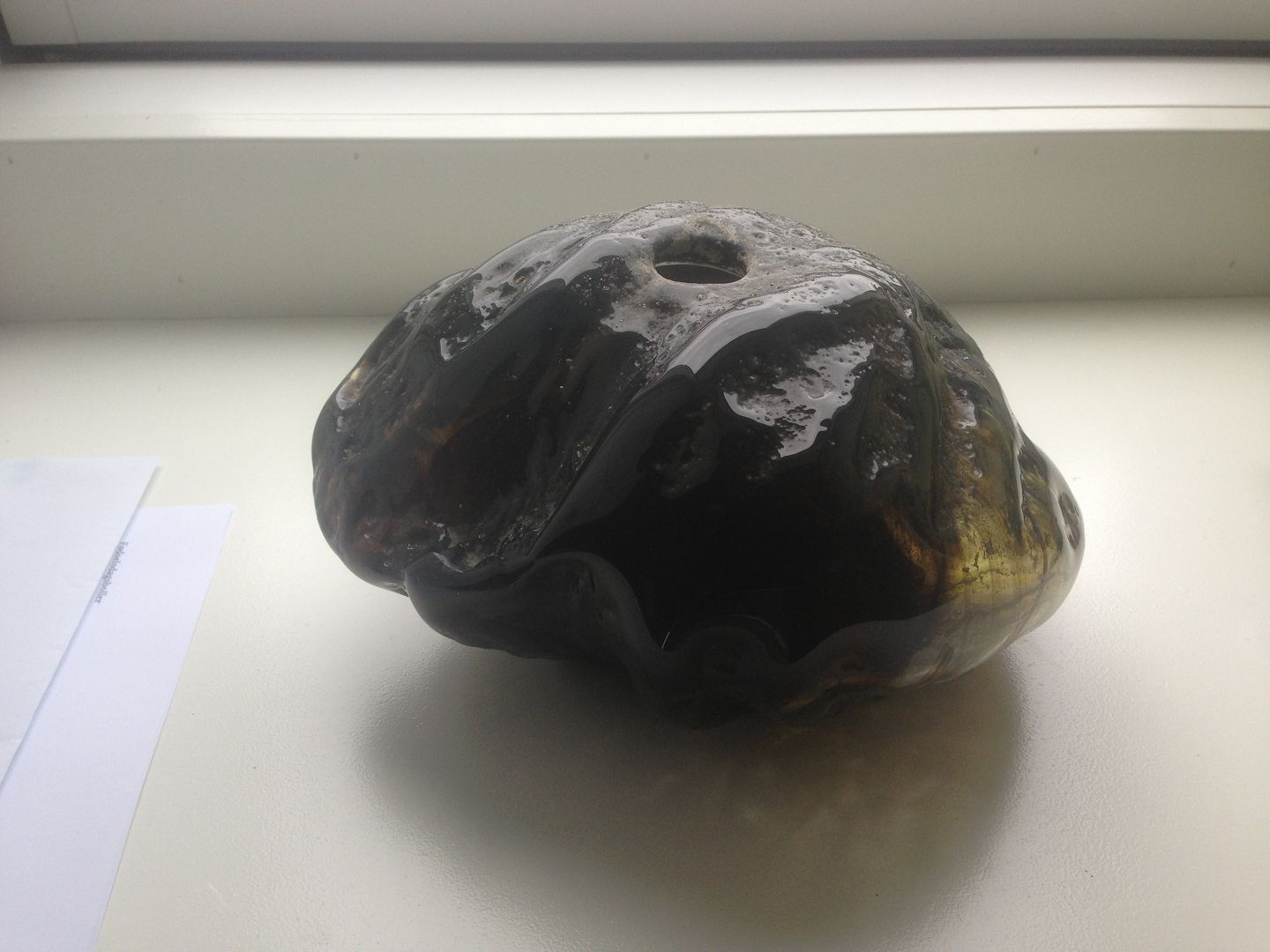 Unique Holmegaard Vase/skulpture by Per Lutken No 52833. Measures 23cm long and 13cm high.