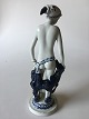 Royal Copenhagen Georg Thylstrup figurine of Girl with dog No 1957. Measures 27cm and is in good condition, except the head has been repaired.
