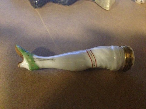 Royal Copenhagen Lady leg needle holder. Marked with the 3 waves in the lid. Dates to 1780-1800. In perfect condition and lid is firm. Measures 4 1/4" or 10,8cm