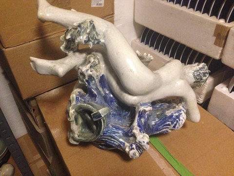 Royal Copenhagen Stoneware Figurine of Agnete and the seaman by Helge Christoffersen. Measures 54cm x 37cm and is in good condition.