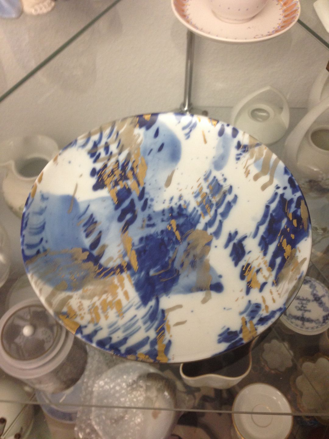 Royal Copenhagen Ivan Weiss Art Plate from 1991. Measures 18cm nd is in perfect condition. Painted in Blue underglaze and after that with gold.