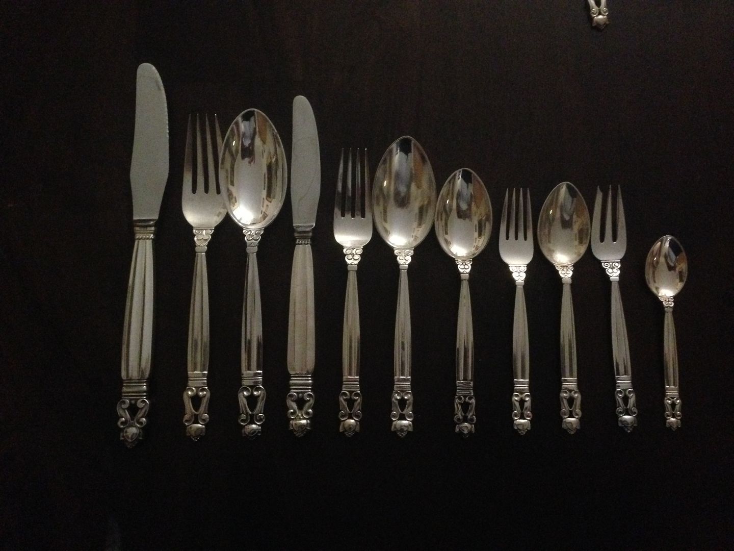 Georg Jensen Sterling Silver Acorn Set with 134 pieces.