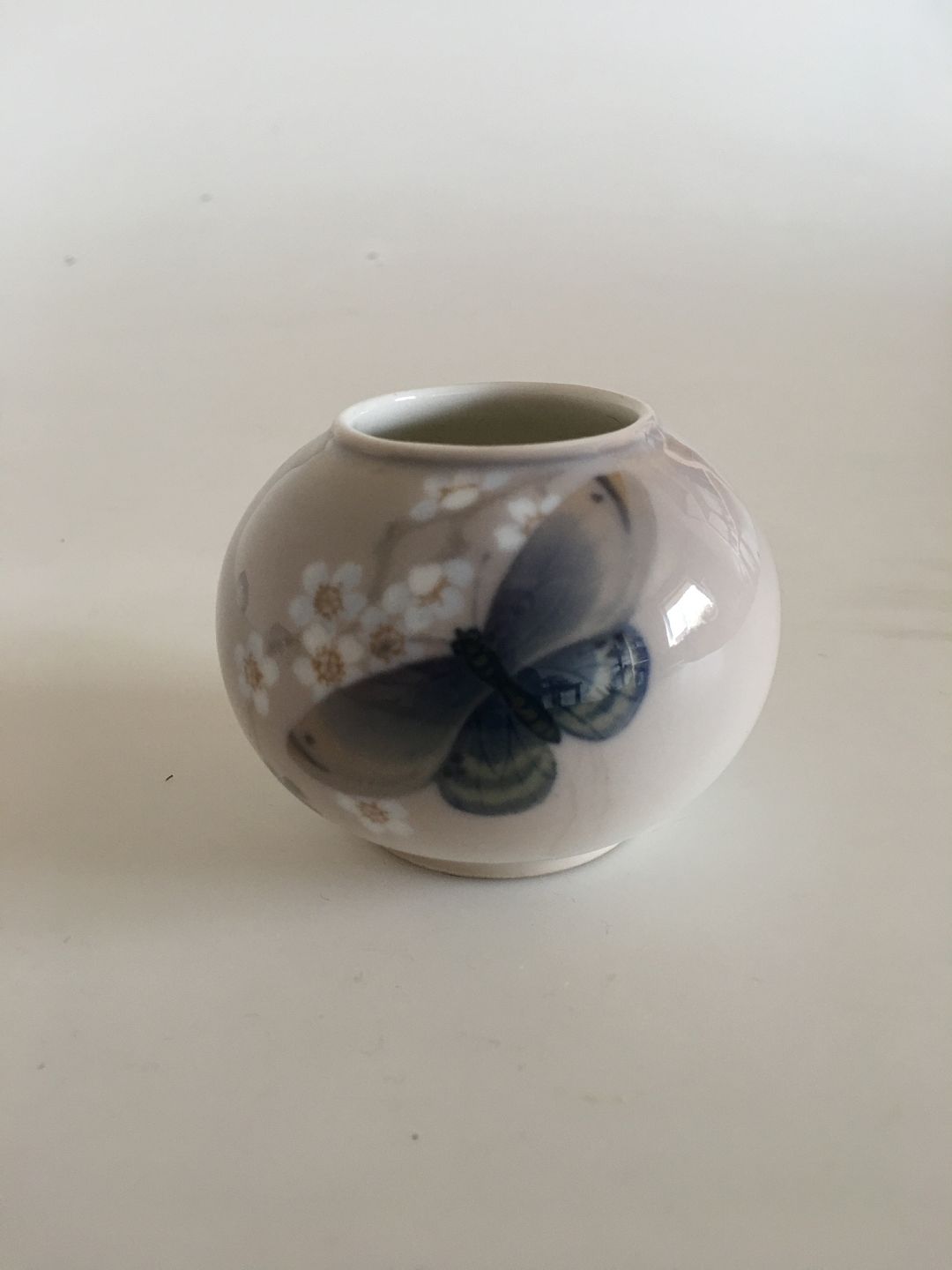 Royal Copenhagen Art Nouveau Vase with flowers and Butterfly No 1528/42A. Measures 5,5cm and is in perfect condition.