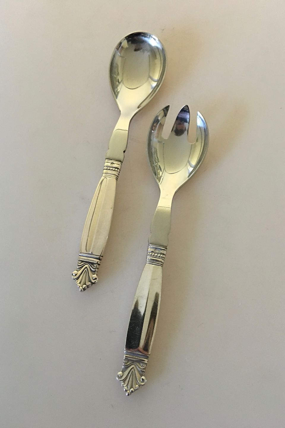 Georg Jensen Sterling Silver Acanthus Salad Set No 134. Measures 16 cm / 6 19/64"