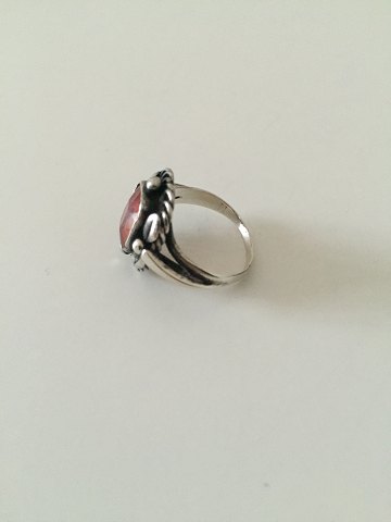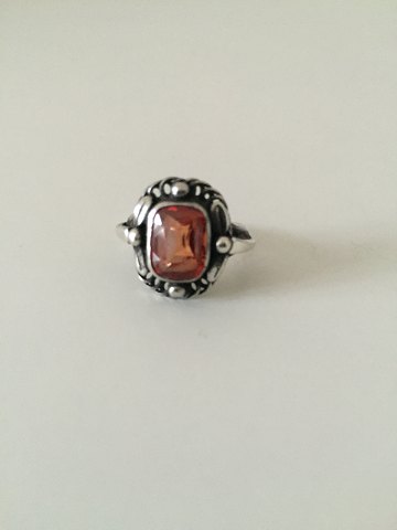 Georg Jensen Sterling Silver Ring with Orange Syntetic Sapphire No 10. With very worn marks, but it can be seen it is from 1933-1944. Ring Size 50 / US 5 1/4. Weighs 4 g / 0.14 oz.