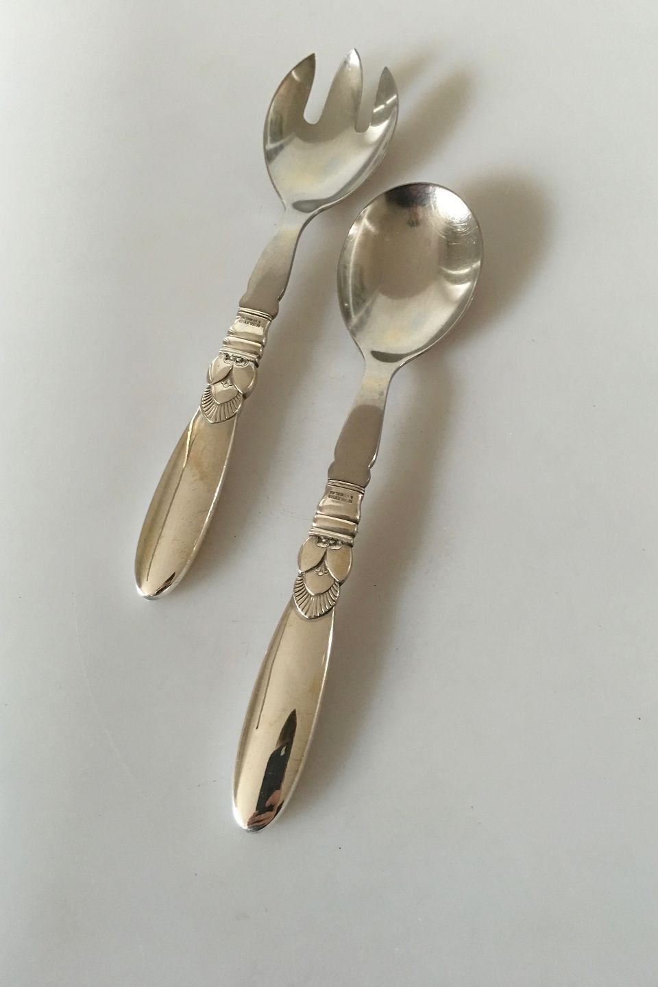 Georg Jensen Cactus Sterling Silver and Stainless Steel Salad Set No 133. Measures 21 cm / 8 17/64". Design Gundorph Albertus 1930