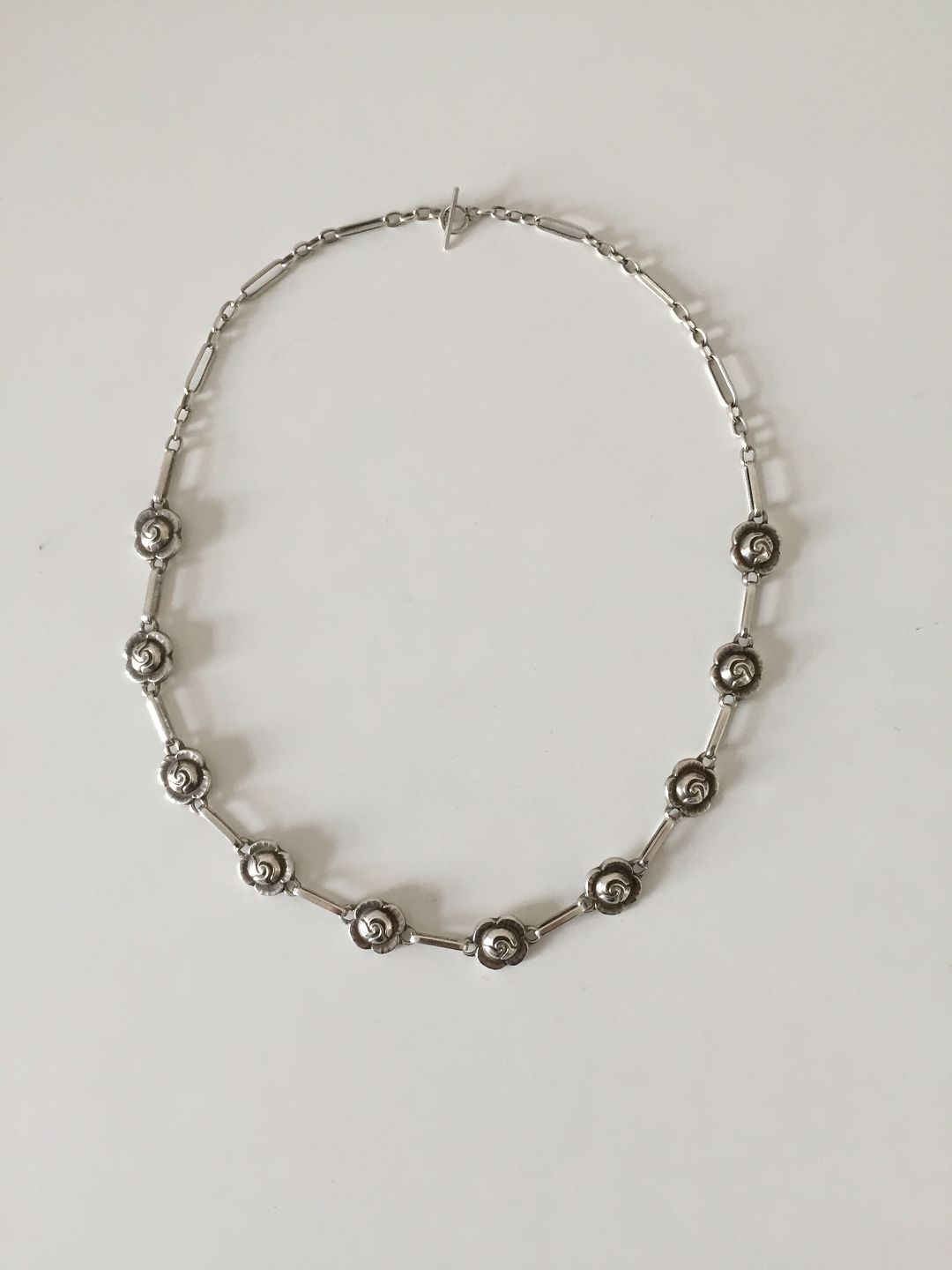 Georg Jensen Silver Necklace of small flowers No 42 from 1915-1930. Measures 45,5cm and is in perfect condition. Weighs 19g / 0,68oz